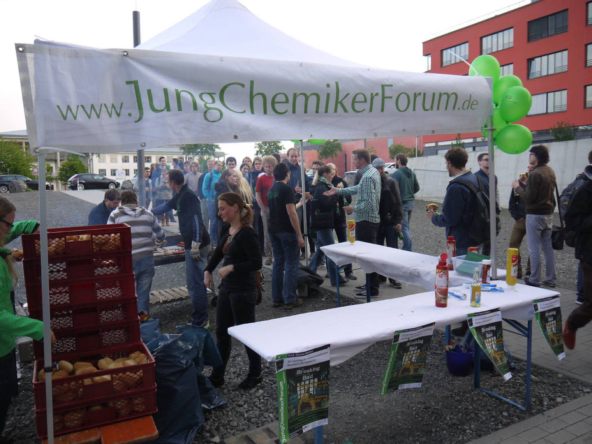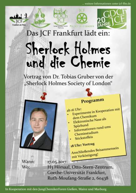 Das Sommerfest in diesem Jahr fand im Rahmen der Vortragsreihe von Dr. Tobias Gruber der "Sherlock holmes Society of London" statt. Gemeinsam mit den Regionalforen Mainz-Wiesbaden, Gießen und Marburg wurde ein umfassendes Rahmenprogramm geschaffen, welches eine kurze Einführung in die Chemie der Kriminaltechnik darstellte. Für eine Abkühlung sorgte frisch zubereitetes Stickstoff-Eis und der Abend wurde bei gemütlicher Atmosphäre mit Grill und Getränken ausklingen gelassen.