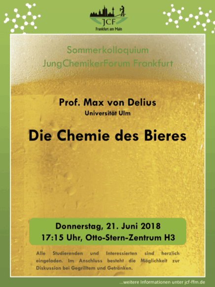Zu unserem jährlich, zwischen Mai und Juni stattfindenden Sommerfesten in Frankfurt laden wir Gastreferent*innen ein, um gesellschaftsnah über chemische Fragestellungen zu referieren und diskutieren und ihr Wissen an ein breites Publikum Interessierter weiterzugeben.