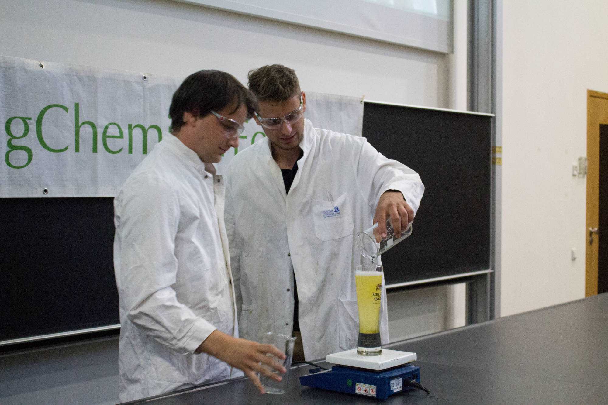 Während des Sommerfests 2018 wurde allen Interessierten "Die Chemie des Bieres" von Prof. Dr. Max von Delius (Universität Ulm) näher gebracht. Für eine Erfrischung an dem warmen Sommertag sorgte frisch zubereitetes 30-Sekunden-Bier.